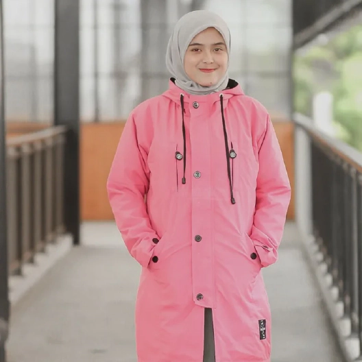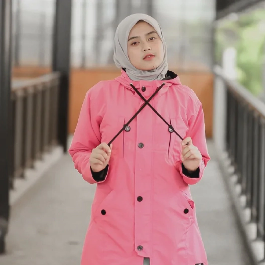 Hijacket Ixora Series, adventuring-inspired layer for Hijaber with a pastel color-blocked design on lightweight fabric for an iconic look 100% Polyfiber Imported, 75% Waterproof & Windproof, Full Dourmill Dacron, Pocket Inside.