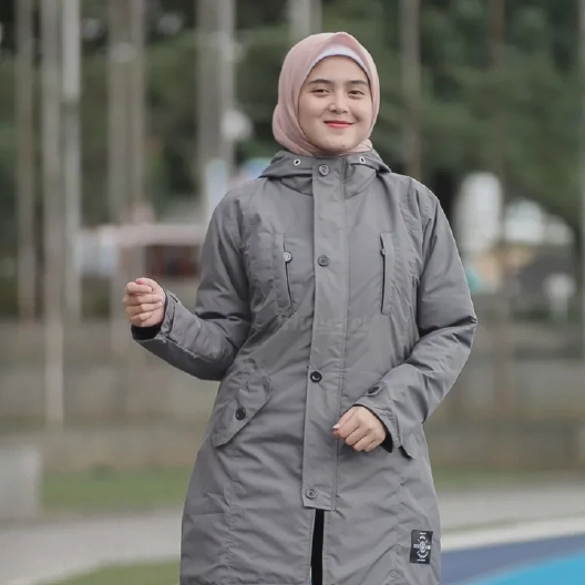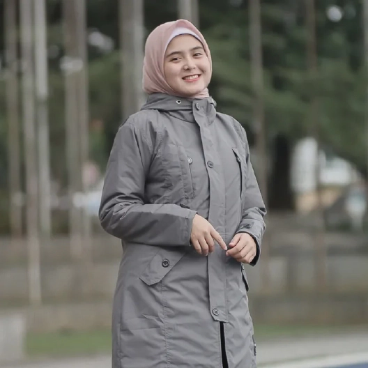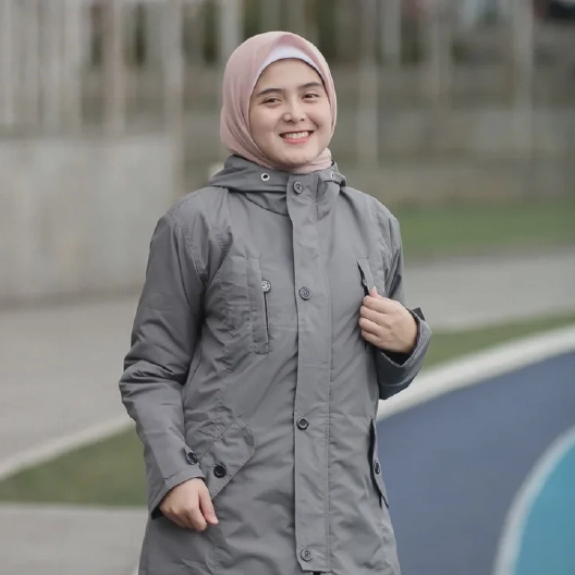 Hijacket Ixora Series, adventuring-inspired layer for Hijaber with a pastel color-blocked design on lightweight fabric for an iconic look 100% Polyfiber Imported, 75% Waterproof & Windproof, Full Dourmill Dacron, Pocket Inside.