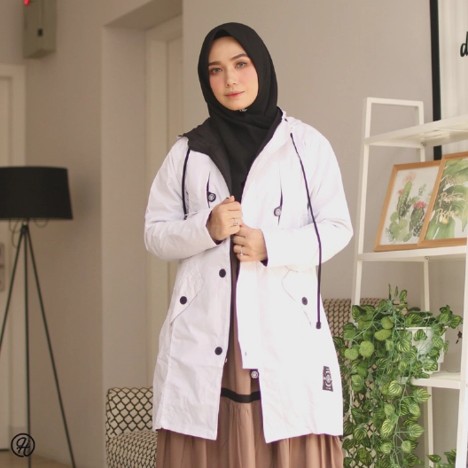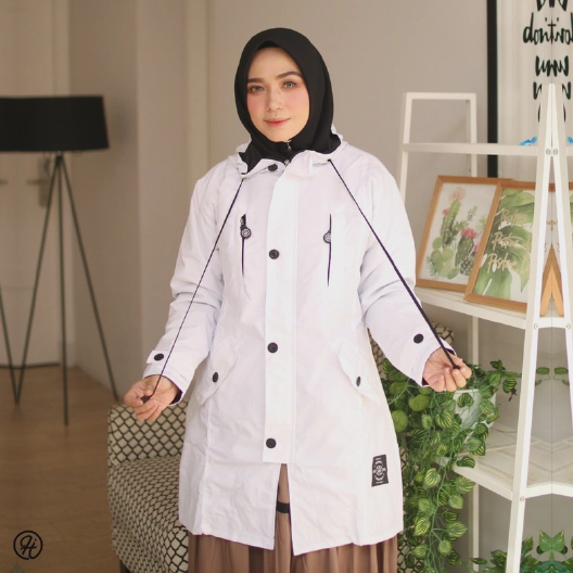 Hijacket Ixora Series, adventuring-inspired layer for Hijaber with a pastel color-blocked design on lightweight fabric for an iconic look 100% Polyfiber Imported, 75% Waterproof & Windproof, Full Dourmill Dacron, Pocket Inside.